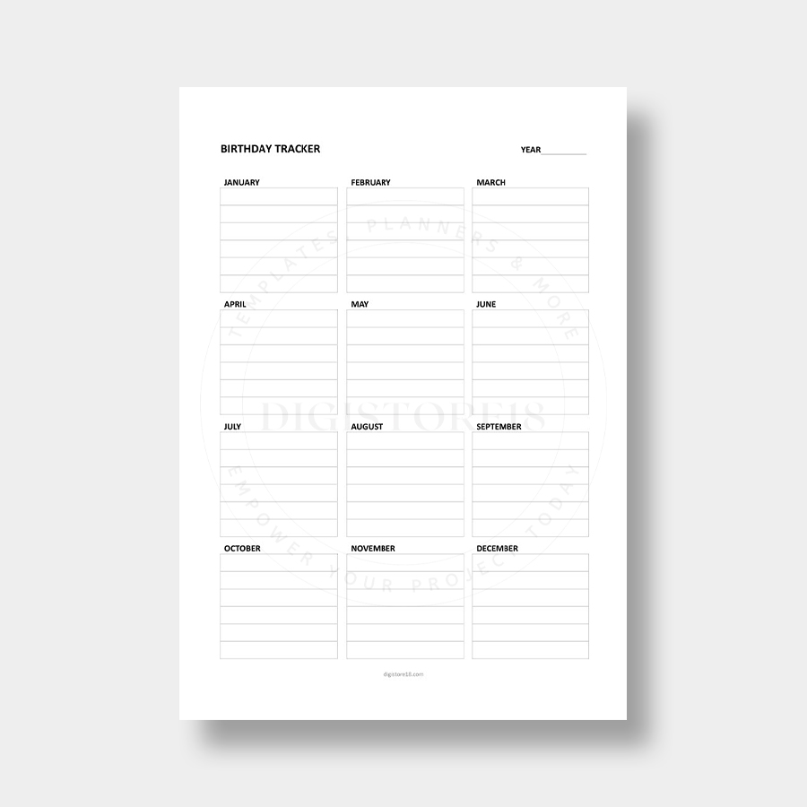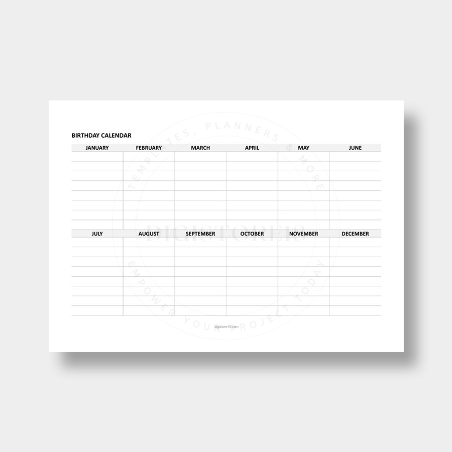 The major benefits include never forgetting important dates, avoiding last-minute gift scrambles, and demonstrating thoughtfulness to family, friends, and colleagues. With multiple design variations, you can choose layouts that match your organizational style and aesthetic preferences. This one-time purchase eliminates the need for expensive annual planners while providing unlimited printing capabilities. Stay organized, reduce stress, and become the person everyone appreciates for remembering their special day.