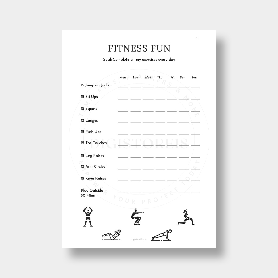 Includes both digitally fillable and printable templates for tracking your fitness levels throughout the year—and beyond. Available in 2 versions (41 and 43 pages). Just download and use digitally, or print and get started right away!