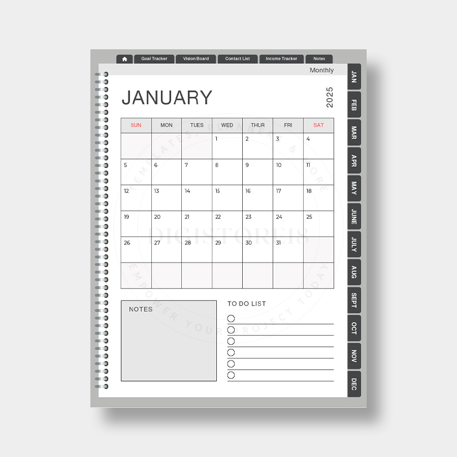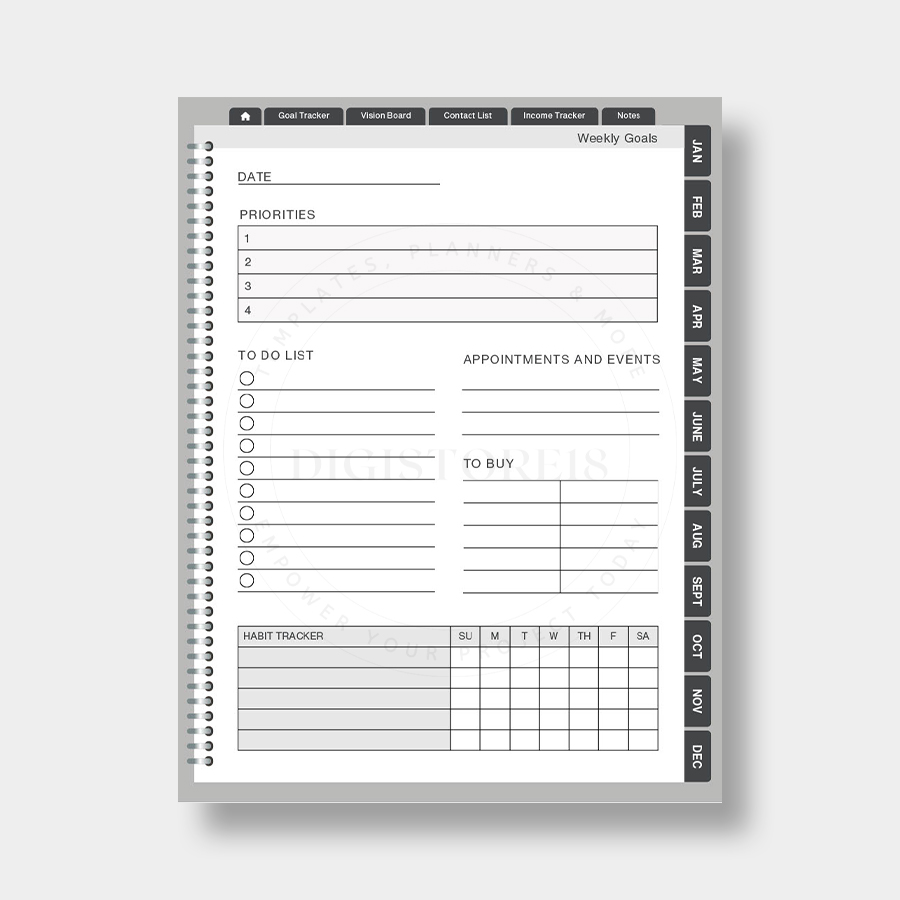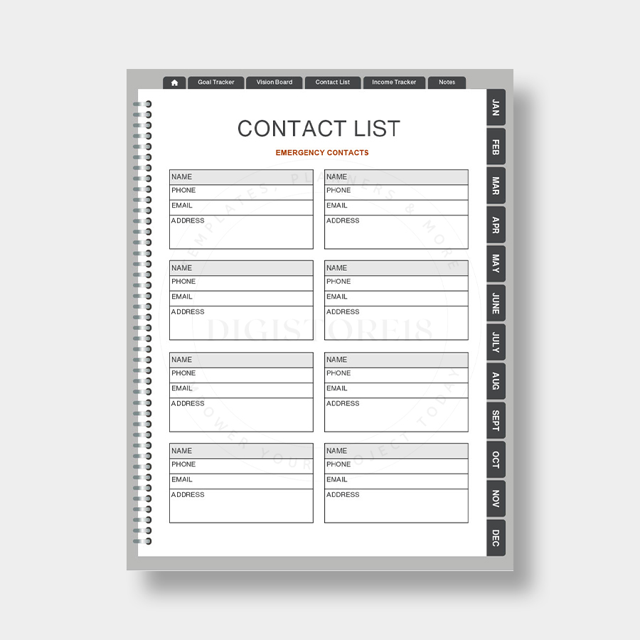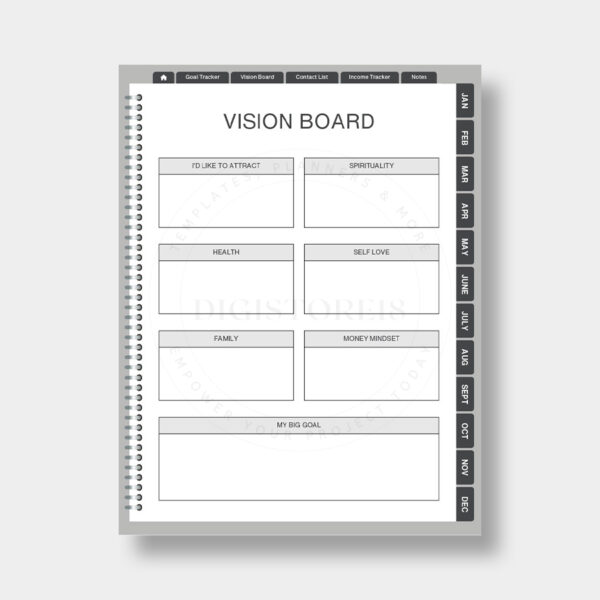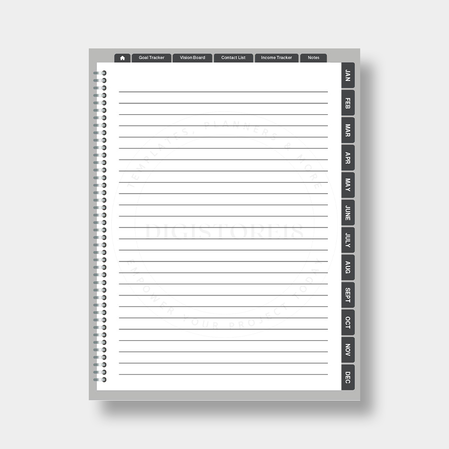 Beyond daily planning, you’ll receive powerful bonus features including a Vision Board for visualizing your dreams, Goal Tracker for monitoring progress, Contact List for important connections, Income Tracker for financial awareness, and extensive Notes pages for capturing ideas and insights.