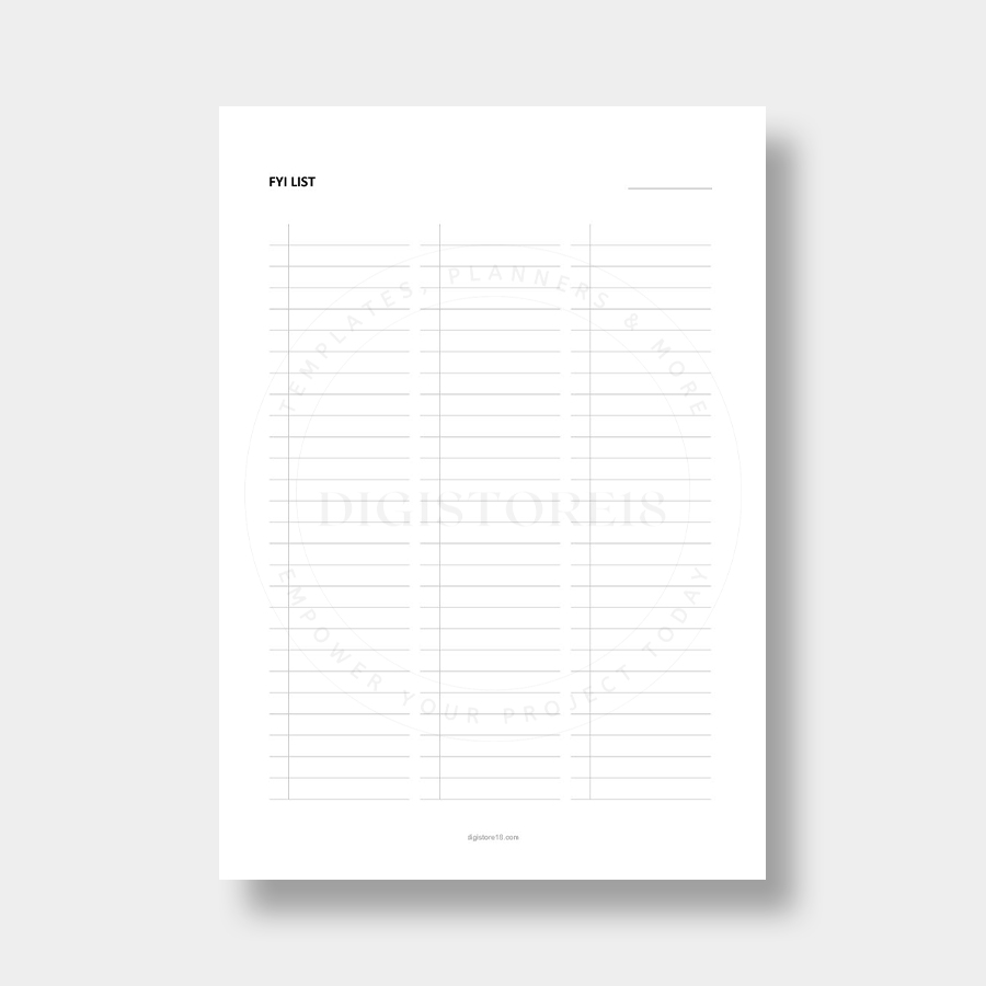 Streamline your information sharing and communication tracking with this comprehensive FYI List system featuring 13 versatile template versions. Whether managing workplace updates, family communications, or project information, these professionally designed templates provide the structure needed for effective information management.